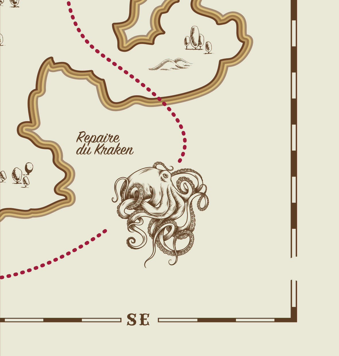 Le morceau de carte que nous avons gagné à la taverne indique un danger redoutable : nous devons traverser le repaire du terrifiant Kraken ! Cet énorme monstre marin protège jalousement les objets qu’il trouve au fond des océans…