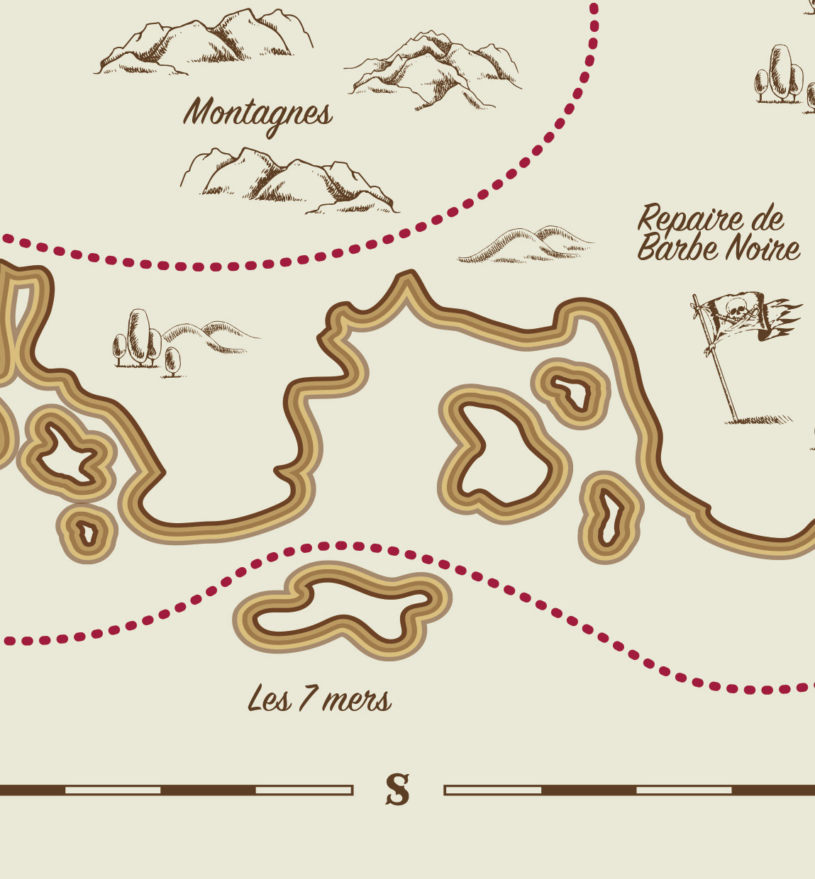 Bravo, moussaillons ! Nous avons battu ce scélérat de Barbe-Noire et récupéré le dernier morceau de la carte trésor. Nous pouvons maintenant la reconstituer en entier et découvrir l'emplacement du Trésor.