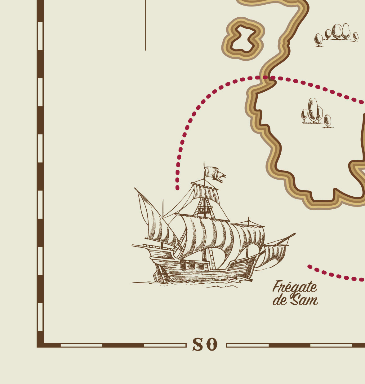 Bravo, l’équipage de Sam nous croit digne de continuer notre aventure à bord de leur frégate. Ils nous remettent ce nouveau morceau de la carte au trésor.